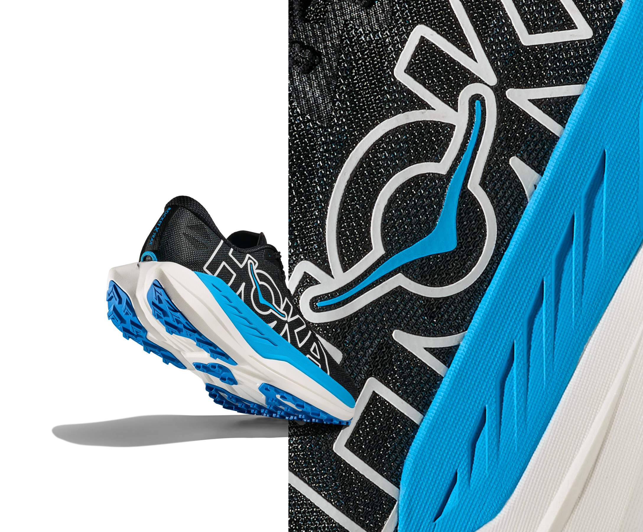 Le modèle Sentier Rocket X présente une assise plantaire coussinée à profil bas qui maintient votre pied au plus près du sol, et utilise un matériau plus ferme conçu pour fournir une poussée efficace.